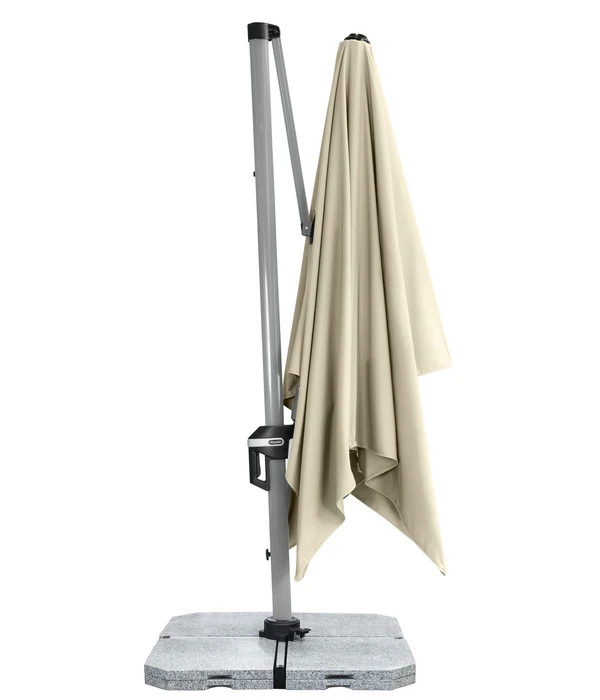 Sie genießen die warme Jahreszeit gern im Freien, wollen sich aber vor zu starker Sonneneinstrahlung schützen? Dann ist der Pendelschirm ‚Active II‘ von Doppler genau das Richtige für Sie! Mittels Fußtaster können Sie ihn um 360° drehen und an den individuellen Sonnenstand anpassen. Darüber hinaus lässt er sich in sieben verschiedene Positionen schräg stellen, wodurch Sie noch flexibler bei der idealen Einstellung des Sonnenschutzes sind. Schauen Sie Ihren Kindern beim Spielen im Sandkasten zu mit dem guten Gefühl, dass sie rundum gut abgeschirmt sind. Oder laden Sie Ihre Freunde zu einem Brunch ein, ohne dass Sie sich Gedanken darüber machen müssen, ob die Sonne zu stark scheint.