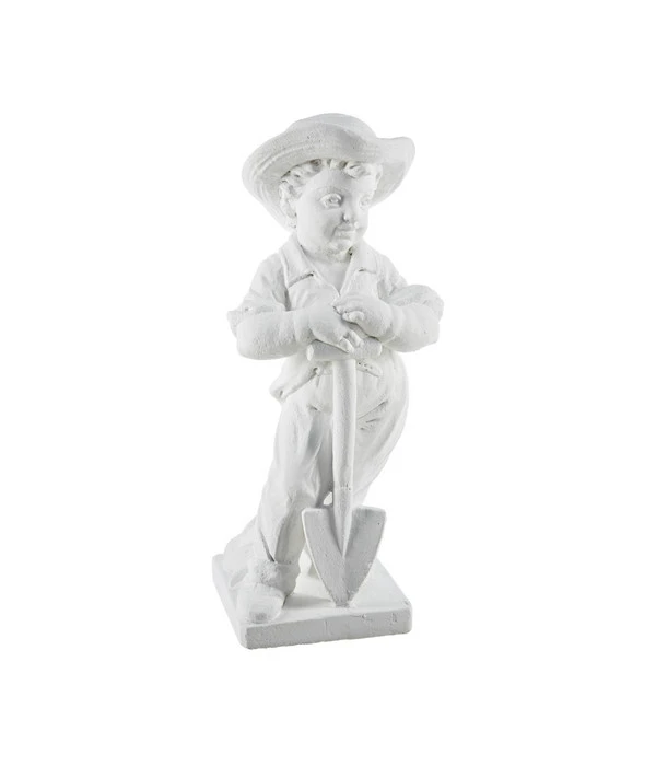 Putten haben Ihren Ursprung im Barock, dort fanden Sie als Skulpturen oder träumerische Malereien Verwendung. Die kleine, schön gestaltete Gärtnerputte in strahlendem Weiß ist ein wahrlich schöner Dekorationsartikel für Ihre Gartengestaltung. Hergestellt wurde die Putte aus Kunststein – das Material weist Frostbeständigkeit auf und ist entsprechend ideal für den Garten und die Terrasse geeignet.