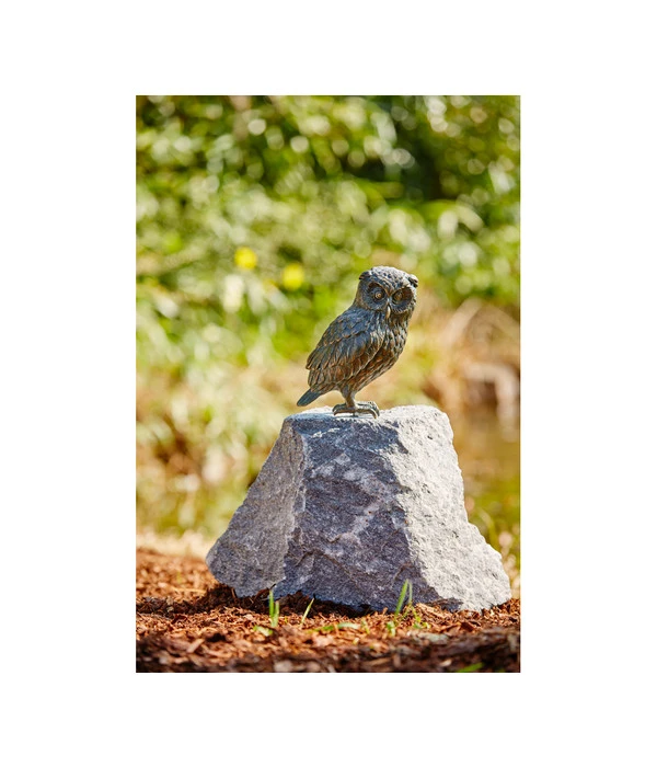 Der Uhu ist die größte Eulenart und zudem sehr wichtig für das Gleichgewicht in unserer Natur. Außerdem steht die Eule für Weisheit und Einsicht. Da liegt es doch sehr nahe, dieses wunderschöne Tier zu würdigen, am besten in Form einer eleganten Skulptur. Der Rottenecker Bronze-Uhu ist mit viel Liebe zum Detail verarbeitet. Besonders viel Wert wurde hier auf die originalgetreue Darstellung des Federkleids und die Intensität der großen Augen gelegt. Somit wirkt der Deko-Uhu sowohl aufmerksam als auch lebendig, vor allem in Kombination mit verschiedenen Steinen und diversen grünen Pflanzen.
